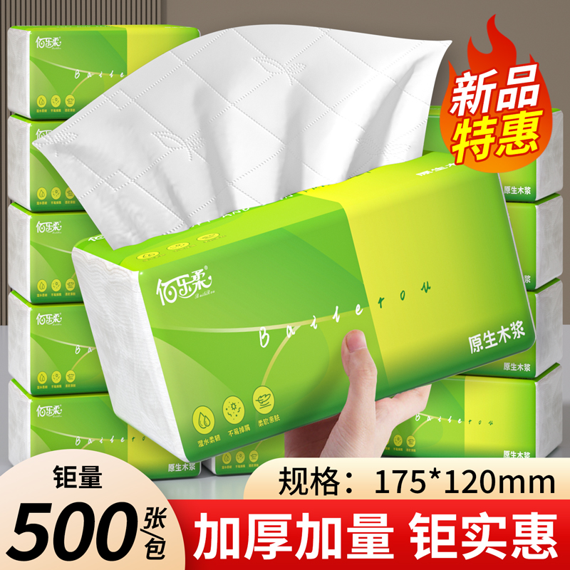 > 500张纸巾抽纸家用实惠装餐巾纸整箱批卫生纸擦手纸抽家庭装加厚