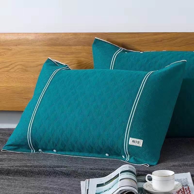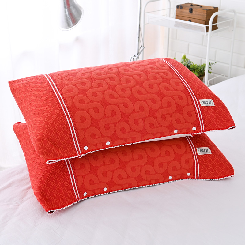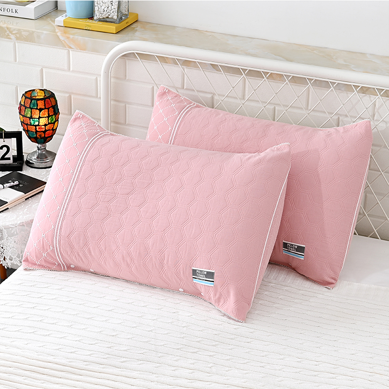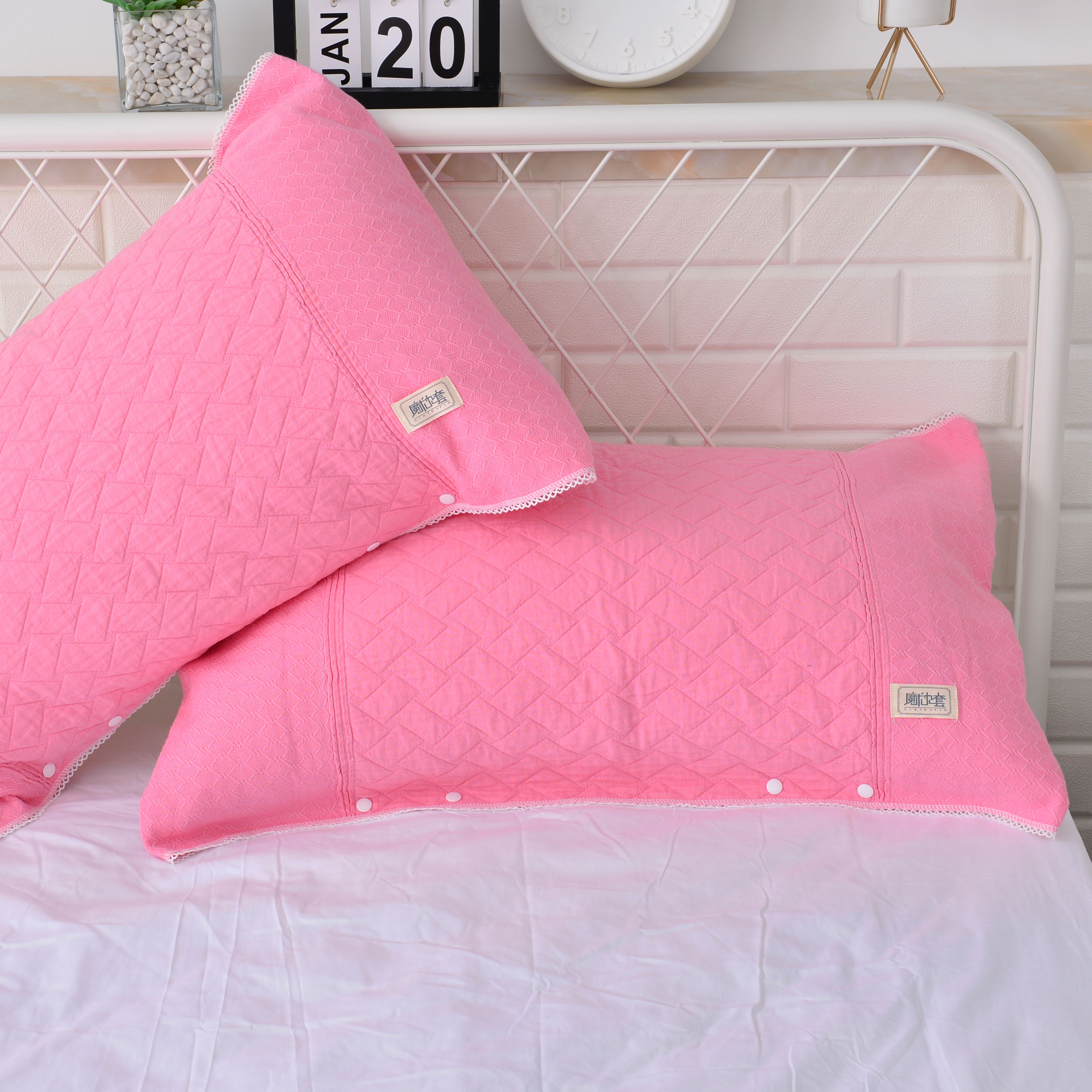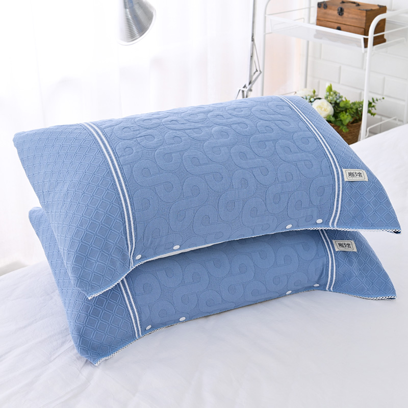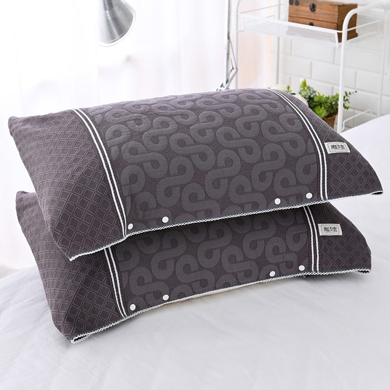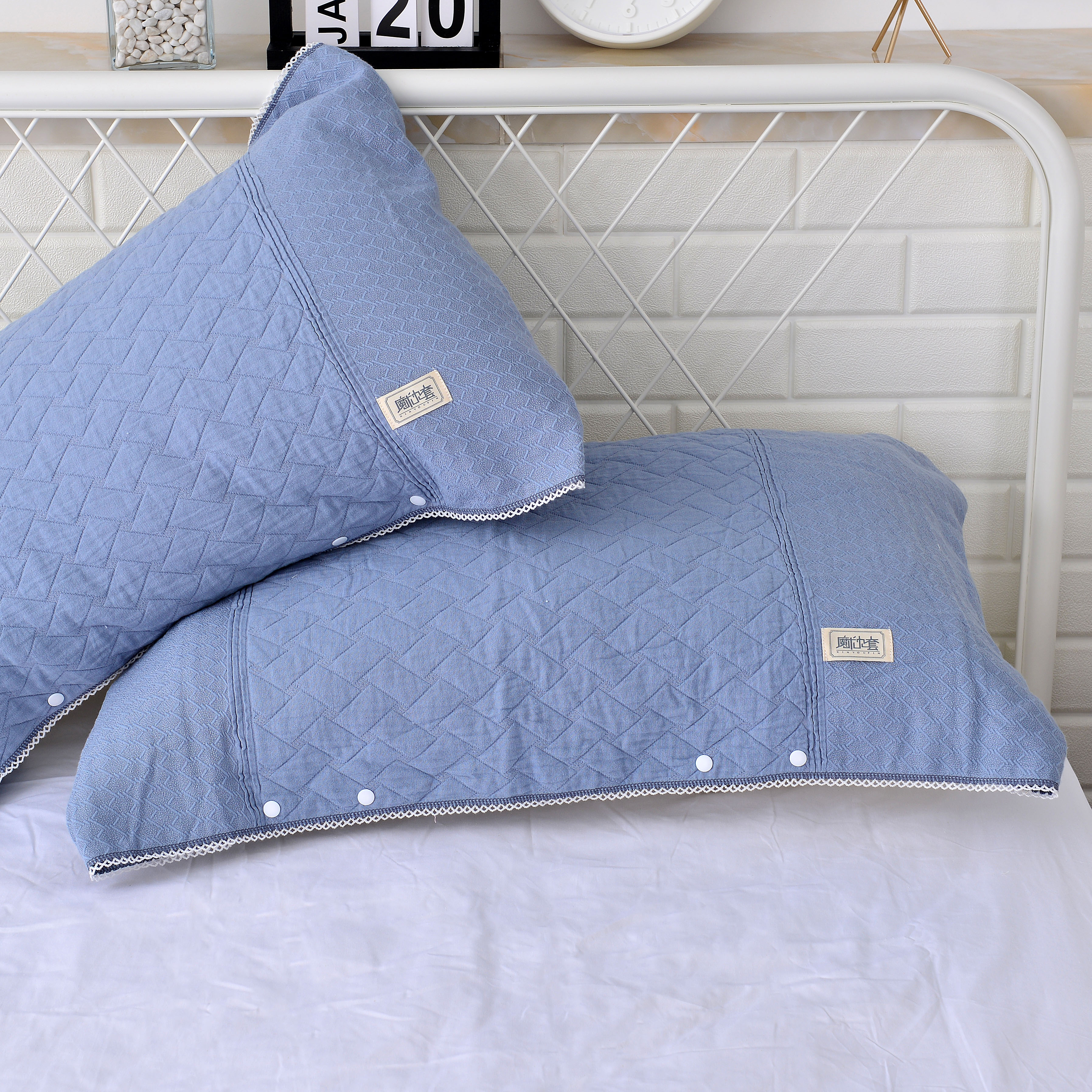 > 纯棉枕巾全棉纱布家用单人卡扣乳胶枕头套单条一对防滑不脱落家用