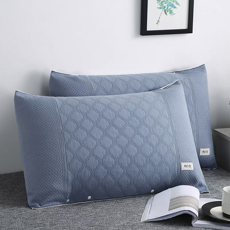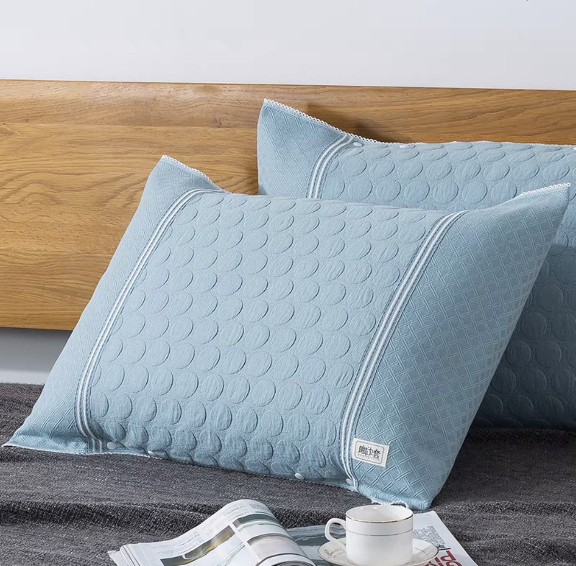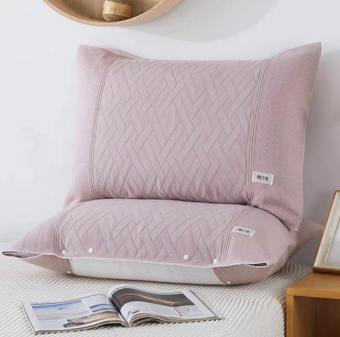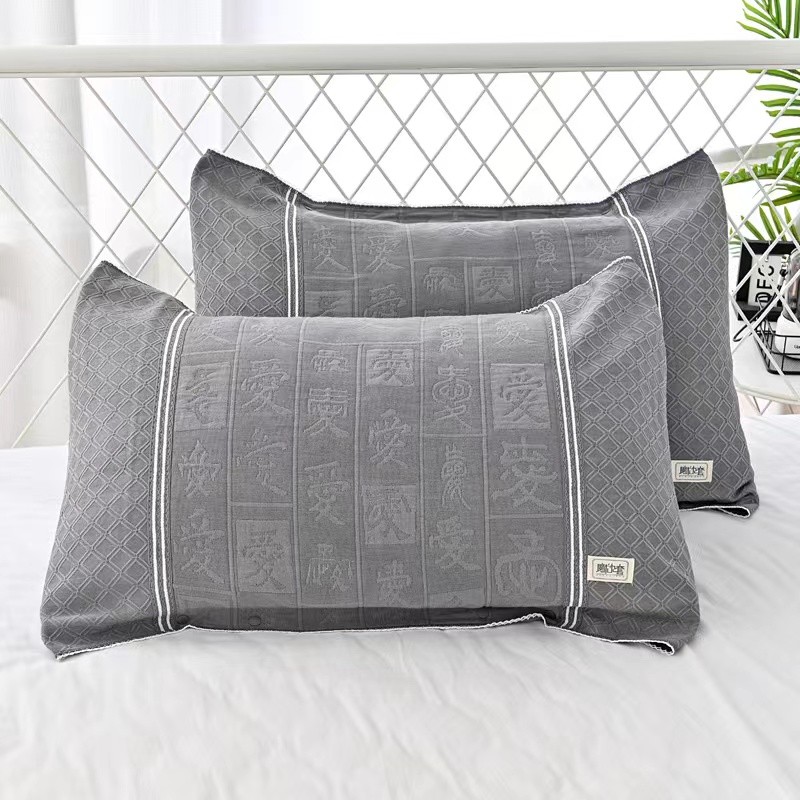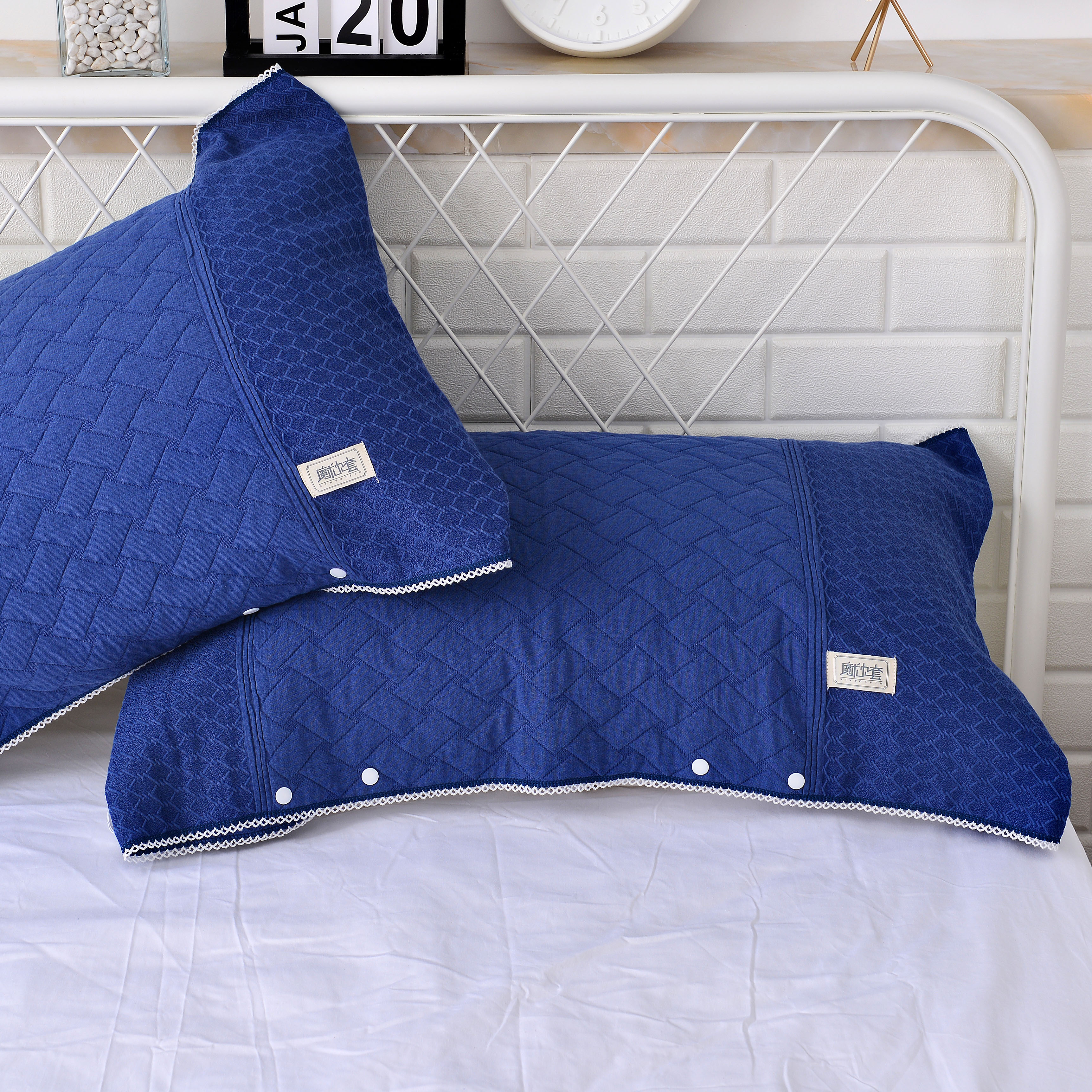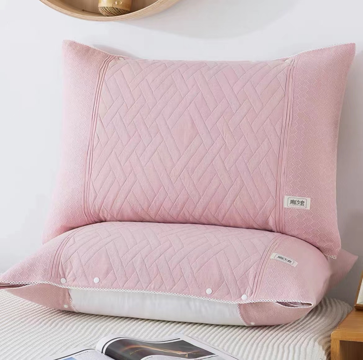 > 纯棉枕巾全棉纱布家用单人卡扣乳胶枕头套单条一对防滑不脱落家用