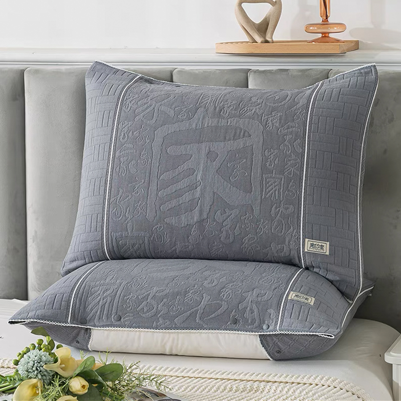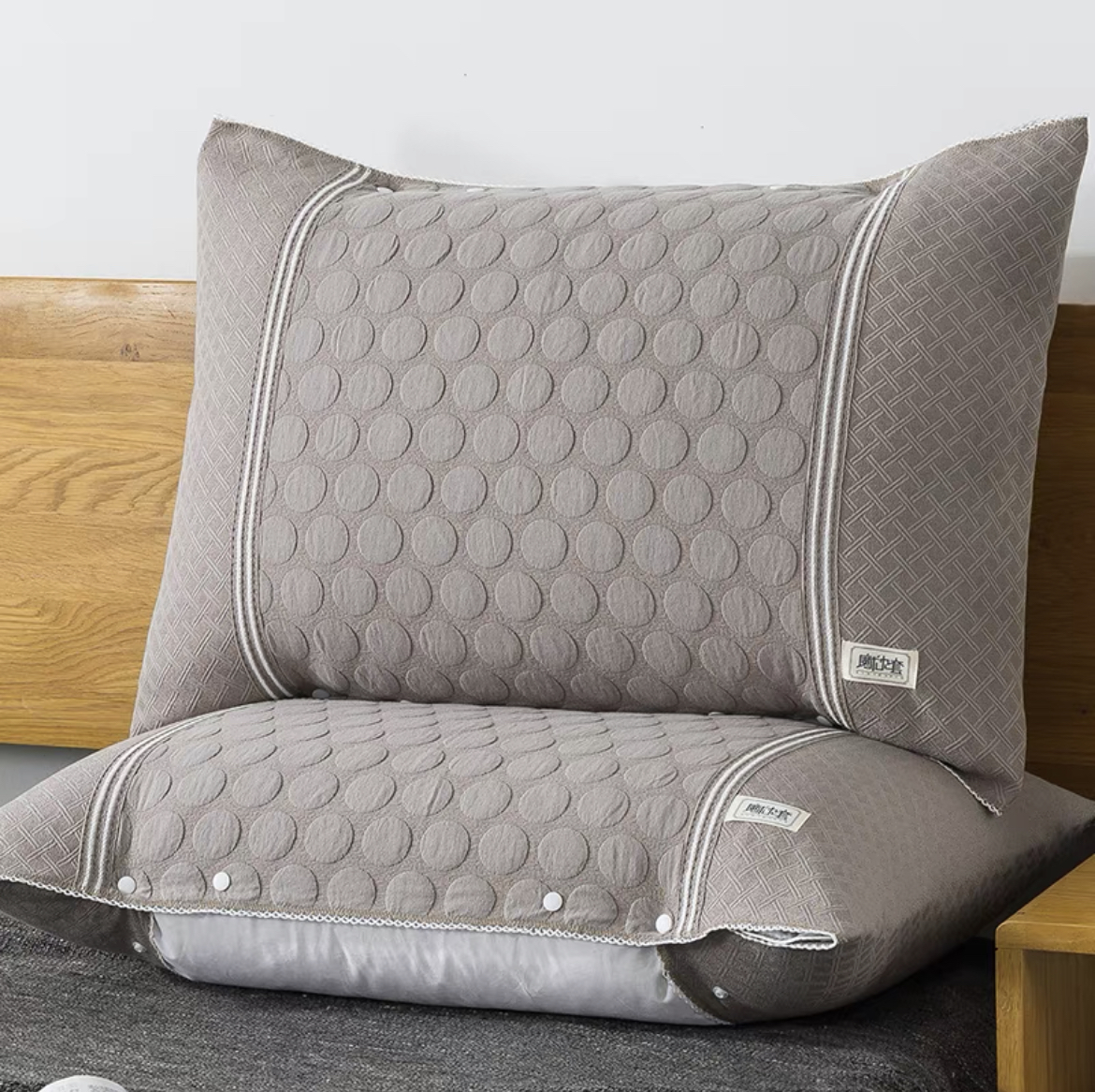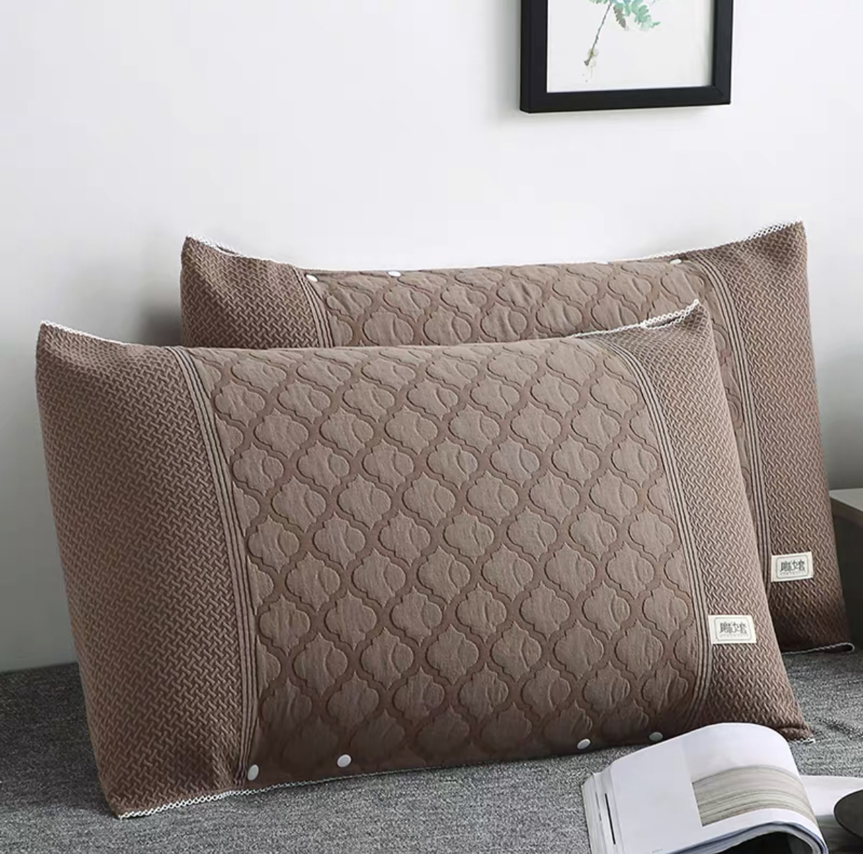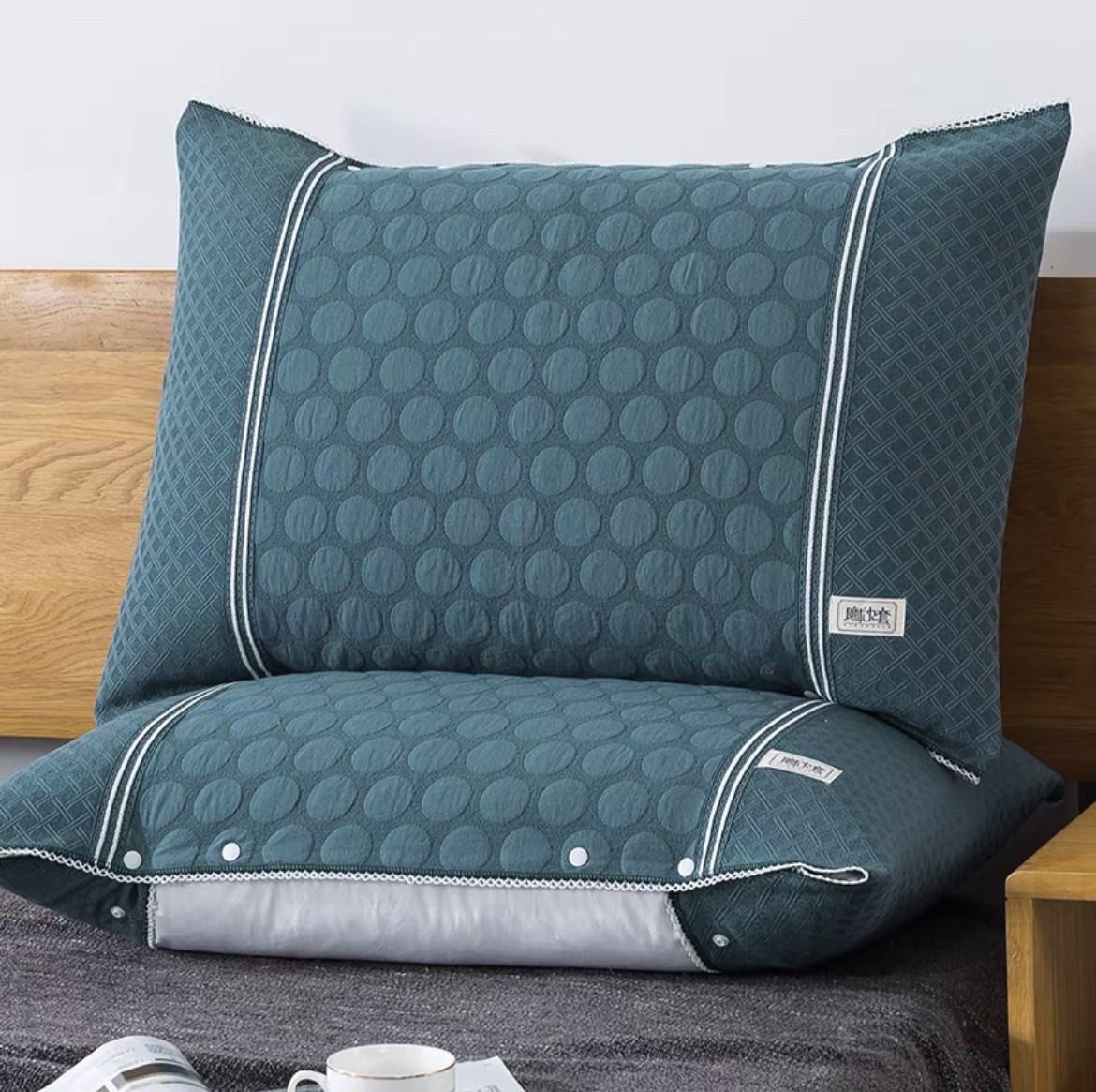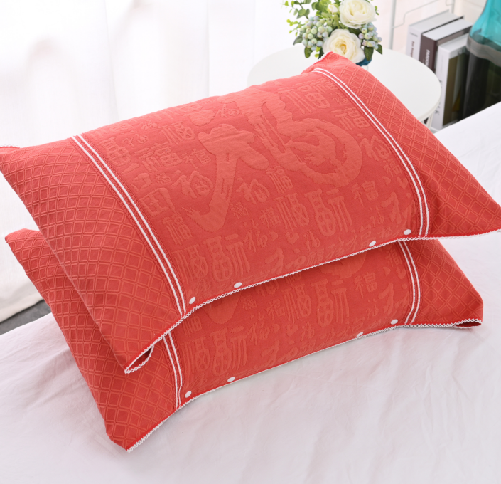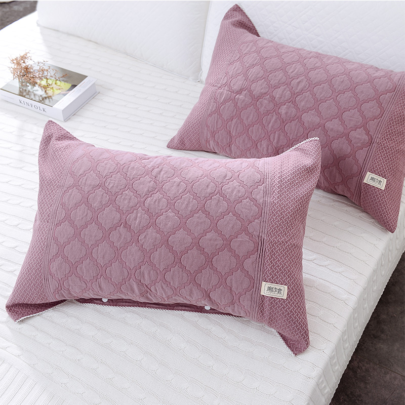 > 纯棉枕巾全棉纱布家用单人卡扣乳胶枕头套单条一对防滑不脱落家用