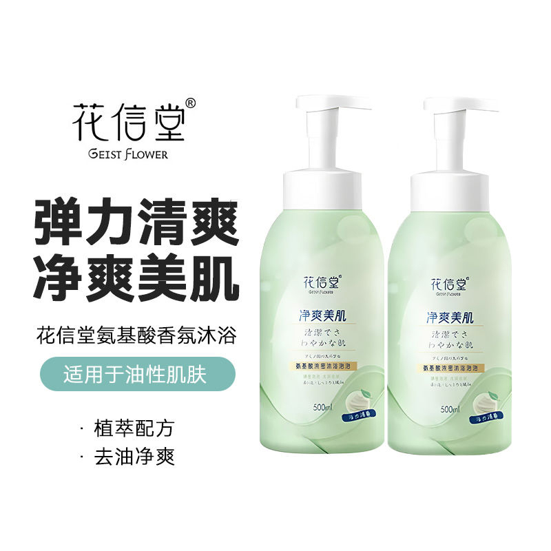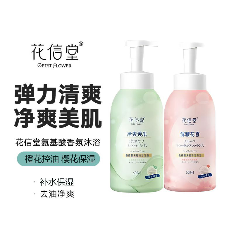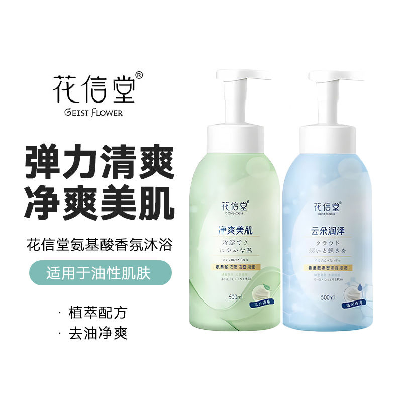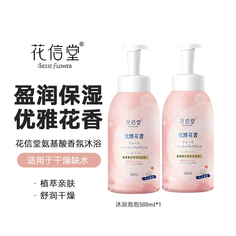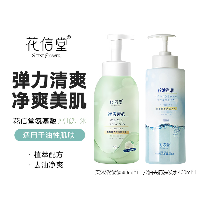 > 花信堂沐浴露氨基酸控油蓬松洗发水套装泡泡沐浴露泡沫型持久留香