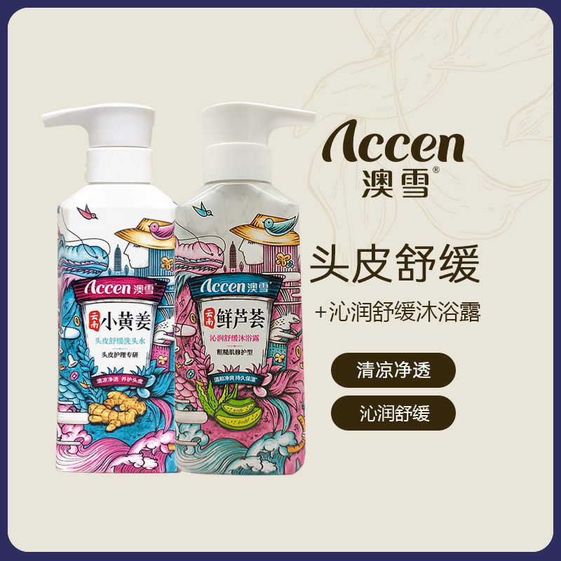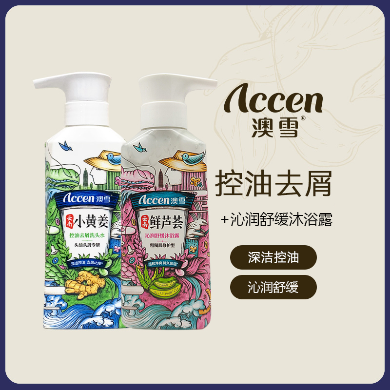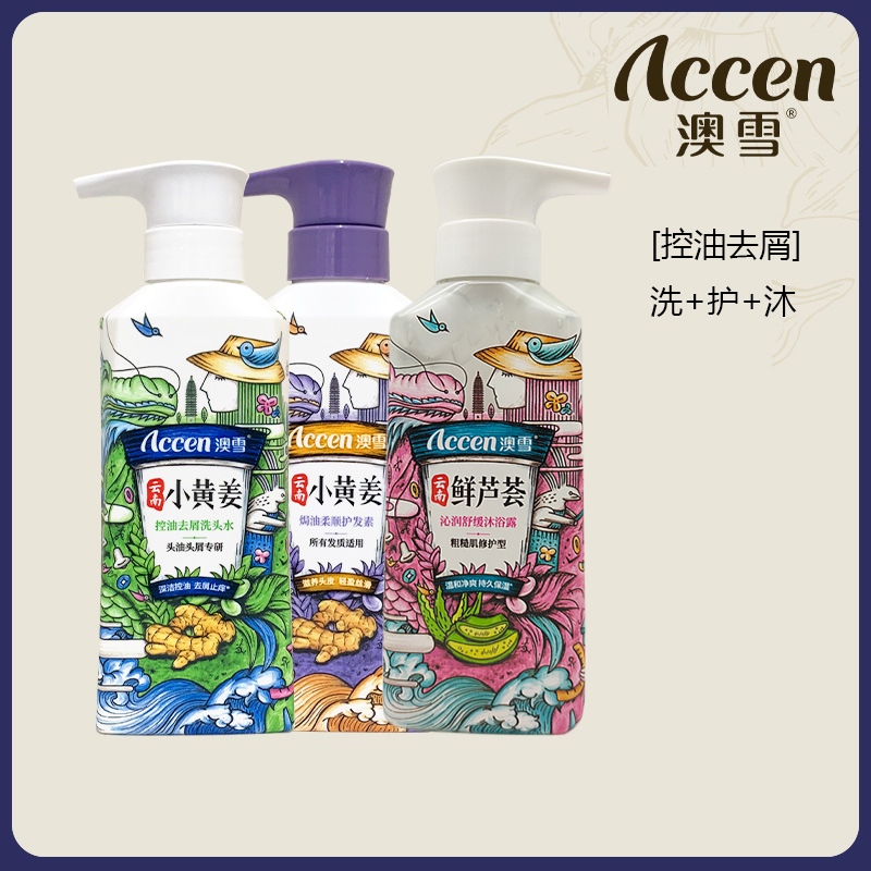 > ACCEN/澳雪小黄姜洗发水防脱生发洗发露套装生姜去屑控油防脱发