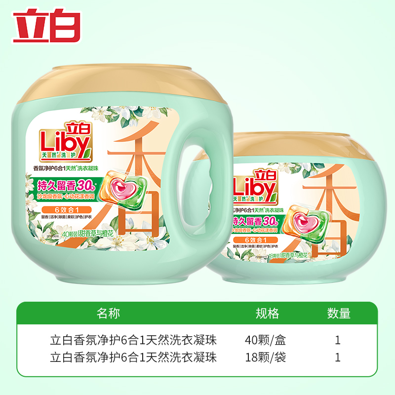 > 百补】立白沙龙香氛洗衣凝珠6合1甜香草与橙花持久留香家庭实惠装